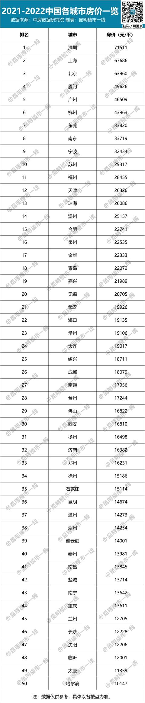 数据显示,昆明房价为14674元/平,在全国50个主流城市中,排第36位。