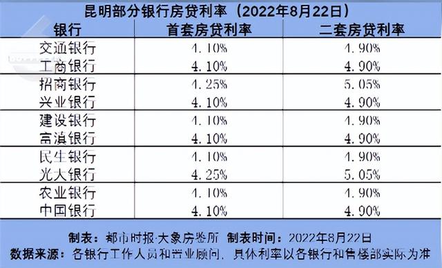 而根据相关媒体的数据显示,目前昆明建设银行、工商银行、交通银行等8家银行已经开始执行最新房贷利率,首套房最低4.1%,二套房最低4.9%。