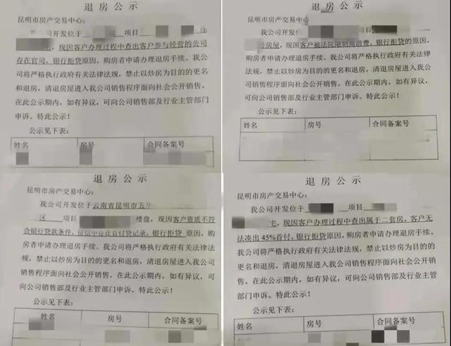 不少购房者还遭遇了拒贷,6月,有近30份退房公示显示购房者遭银行拒贷,9月份,昆明半个月就有近40起购房行为因银行拒贷而终止。