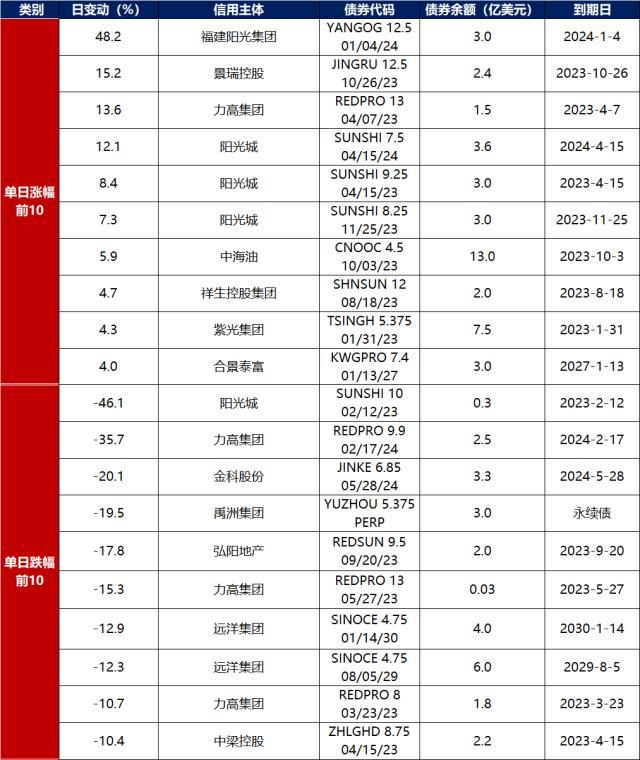 远洋资本:拟对旗下一笔10月25日到期的美元债寻求展期;该债券为2021年10月20日在新加坡交易所发行的高级无抵押境外公募美元债券,总规模3.5亿美元,债券期限364天,票息6%。
