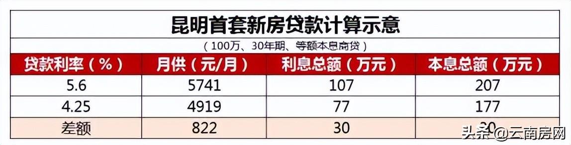 如果按照100万30年期商贷,等额本息的方式计算,他每个月的月供就会比本月新购房业主多822元,一年下来近万元。如果未来一年房贷利率还在下降,那么这一差距势必还会进一步拉大。这样的情况实际上不止在昆明,在全国范围内都有。