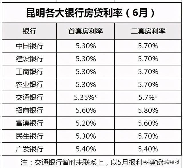 6月昆明首套房房贷利率平均水平约5.34%略高于全国平均水平