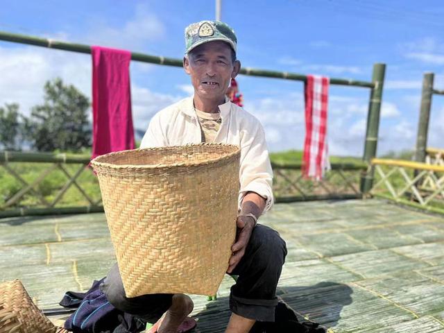 抵边村村民手工艺编织背篓。汤锁钰摄