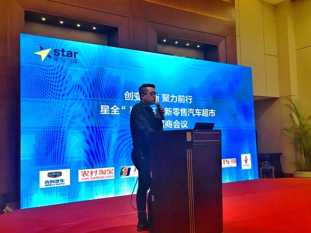 首先,浙江星全汽车服务有限公司总经理王频先生上台致辞,王总在致辞中表达了对中国汽车新零售市场的关注与信心。他表示星全汽车联合华耀私募股权基金、优店生活、第一车贷、农村淘宝、手拉手等众多资源,旨在探索中国汽车市场销售渠道拓展、服务渠道覆盖以及汽车后市场整个生态圈的整合营销。并强调,目前中国的汽车电商平台只是作为汽车销售渠道的补充,星全“惠选车”新零售汽车超市也将整合主机厂资源与经销商大集团共同达成此目的。