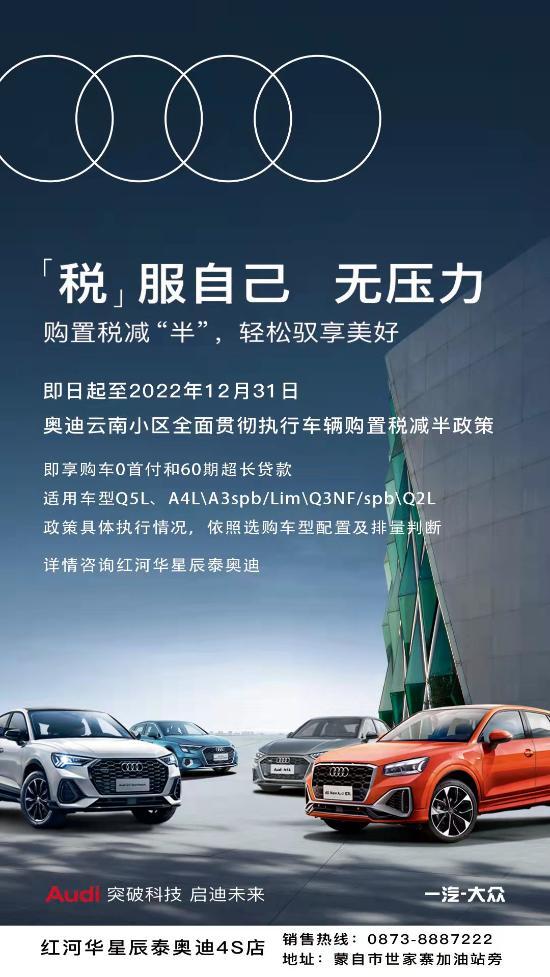 奥迪云南小区车辆购置税减半政策,即享购车0首付和60期超长贷