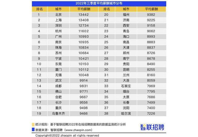 ☆10月10日,记者从智联招聘获悉,日前智联招聘发布《中国企业招聘薪酬报告》,展示昆明等国内38个核心城市企业的招聘薪酬水平。数据显示,今年三季度昆明平均薪酬8255元,排名全国第30。