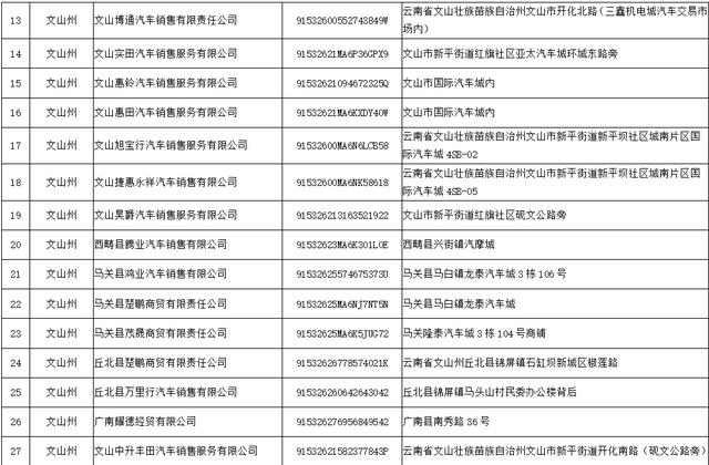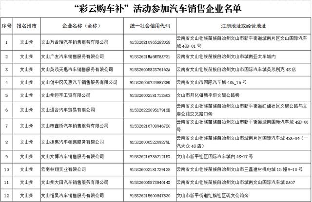 附件:文山州“彩云购车补”活动参加汽车销售企业名单