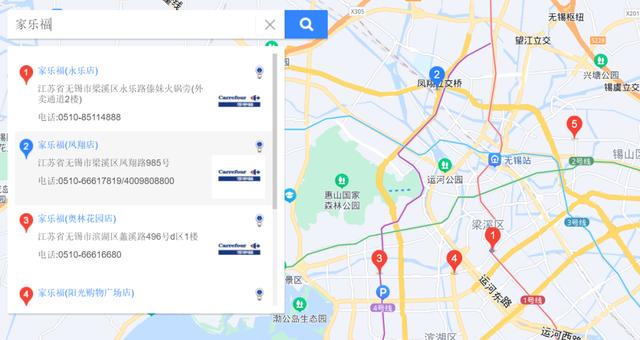 从百度地图上查询到的家乐福无锡的5家门店,小编已经去了其中3家,每一家的货柜上都有大量的“空白地带”。