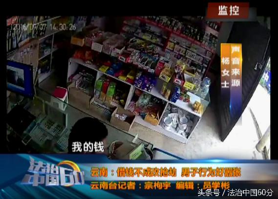 杨女士的小卖部开在云南曲靖市会泽县娜姑镇,监控显示,下午2点20分,一名20岁左右,身穿白色T恤和牛仔裤的男子走进杨女士的小卖部,开口就是借钱。
