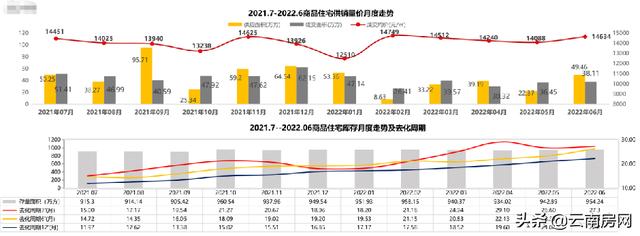 值得注意的是,截止6月结束,昆明主城住宅库存已然攀升至954.24万方,按照过去一年的销售情况推算,去化周期达22.2个月。这也说明了房价依然缺乏上涨动力,下半年或者延续至明年初,昆明住宅均价或许会一直维持在1.4万/平的水平线上徘徊。