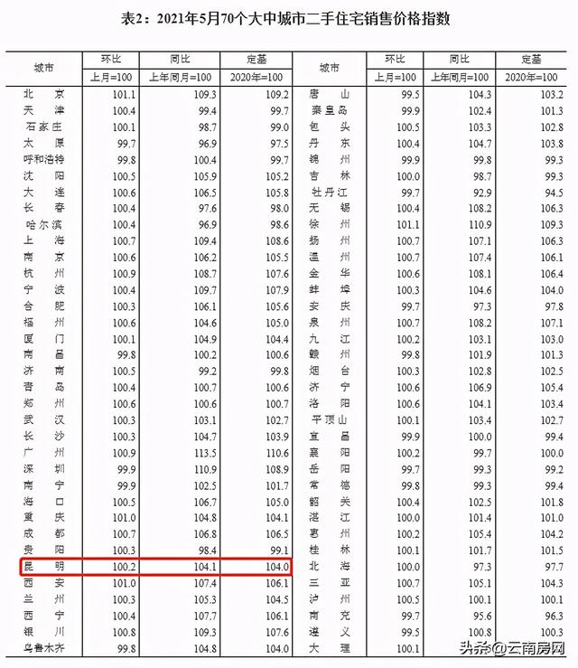 昆明5月二手房价环比上月上涨0.2%,同比上涨4.1%
