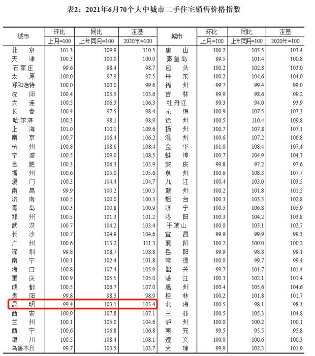 环比来看,6月昆明二手房价格环比下降0.6%,降幅在全国70城中高居第2位。